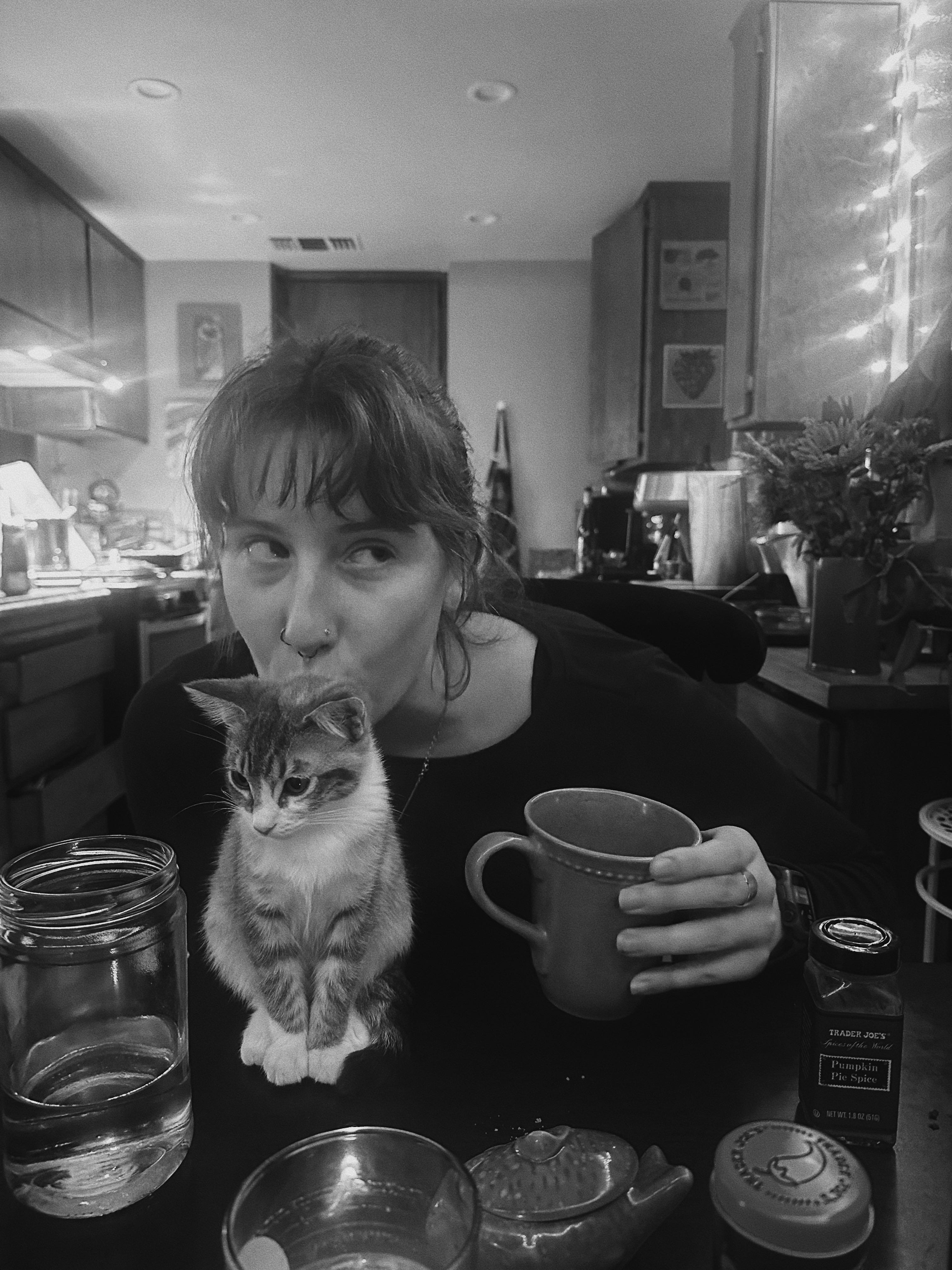 “I met Dawson in November of last year, just after the sixth anniversary of the fire. I wasn’t in a great place, but despite that Dawson decided to take a chance on me, and we now have the most beautiful life together. We officially moved in together in late July, although I had been living with him since probably February… not exactly the most ideal situation for either one of us, but we worked together to make it work. Now we have an apartment that lets us exist with each other, not on top of each other, and we have the cats! I am on the fence about whether or not I would tell my younger self any of this, because all of the choices I have made have led me to right here today, and knowing that this life is possible leads me to believe I wouldn’t do anything to jeopardize that. And while things are the best they have ever been for me, there are new challenges. I miss my sisters, the laundry is overwhelming, figuring out what to eat three times a day is nearly impossible. Money is tight, really tight. I can’t afford to go to college, the Veteran’s office told me that I probably wouldn’t get my benefits even though my mom is a disabled Marine, and there is always a bill due. I work full time, I am still taking two classes, and somehow everything works out. Some days I still feel paralyzed, I wonder when the money will stop working, I wonder if I need a second job. There are days I want to give up on finishing college, when I do it feels like salt on an open wound. School is what kept me going after the fire, what motivated me to get out of bed. To be here now is a sour relief. Like I am stuck at halfway.